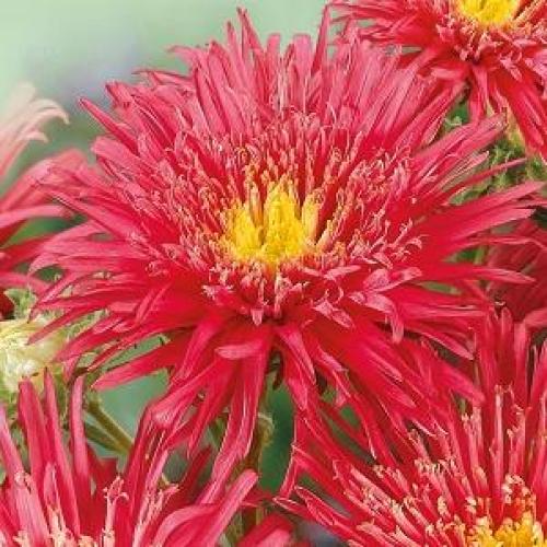 Айстра голчаста Стар червона - однорічна рослина з компактним, прямостійним кущем, висотою 70-80 см і великими, махровими, кулястими суцвіттями насичено-червоного кольору до 10 см у діаметрі. Вона ідеально підходить для клумб, квітників і зрізу, радуючи своїм тривалим цвітінням з середини літа до осінніх заморозків.