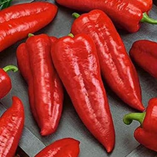 Перец Маркони – раннеспелый сорт сладкого перца типа Каппи. От всходов до технической спелости 85-105 дней. известен своими длинными, сочными и ароматными плодами, обладающими насыщенным сладким вкусом. Плоды имеют коническую форму, длиной более 20 см и весом 150-200 г, толщиной стенок 7-8 мм. При созревании перец меняет цвет с зеленого на алый. Он универсален в использовании – подходит для свежего потребления, салатов, жарки, фарширования и консервирования. Устойчив к основным заболеваниям перца. Высокая урожайность.