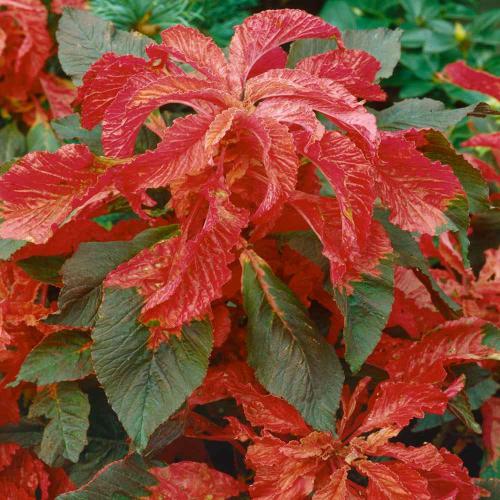 Амарант трехцветный Блеск - однолетнее декоративное растение, произрастающее до 70-150 см в высоту. Декоративность достигается вследствие разной окраски листьев – сочетание красного, розового и зеленого цветов. Растение используется для оформления клумб, рабаток и солитерных посадок.