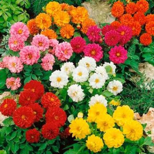 Георгина Гарден Прайд, смесь – яркая махровая низкорослая смесь. Растения компактные, хорошо ветвящиеся. Образуют аккуратный куст с большими махровыми соцветиями ярких расцветок. Цветение раннее и продолжительное. Высота растения 30-35 см, диаметр цветка 6-8 см. Используют для оформления бордюров и единичных посадок в горшки и контейнеры, станет отличным дополнением к смешанной клумбе.