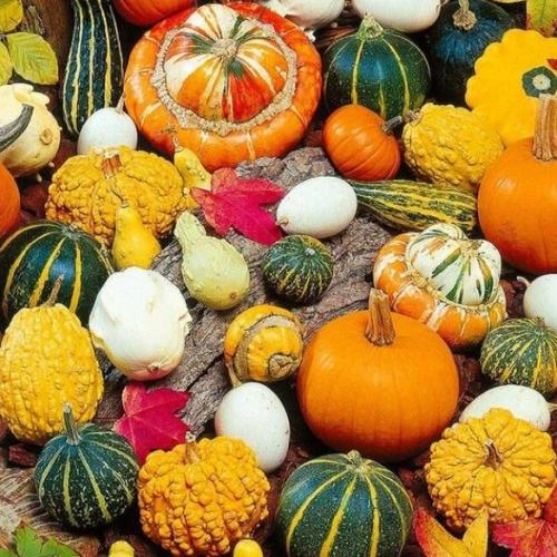 Тыква декоративная – среднеспелый сорт тыквы. Растение плетистое, с густыми листьями. Завязывает примерно до 30 плодов небольшого размера, стебель от 3 до 5 м в длину. Форма плодов может быть совершенно разной грушевидной, плоской, овальной и округлой, окрас - желтый, зеленый, полосатый. Кожа твердая гладкая или холмистая, мякоть тоненькая, плотная, средний вес 300-500 г. Вкус тыкв своеобразен, поэтому их используют для различных декоративных изделий и композиции из него, они долго сохраняют свой товарный вид.